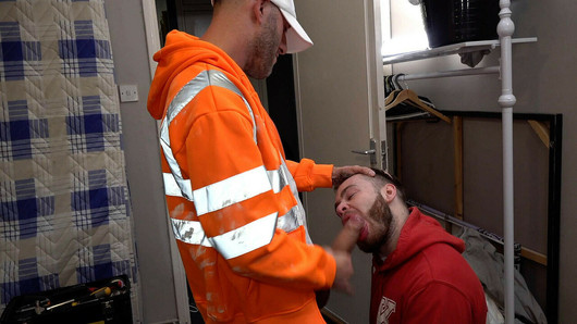 Dva napaljena slikara imaju tvrd duboki oralni i analni seks na poslu do orgazma